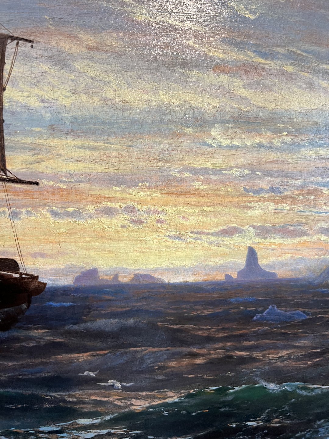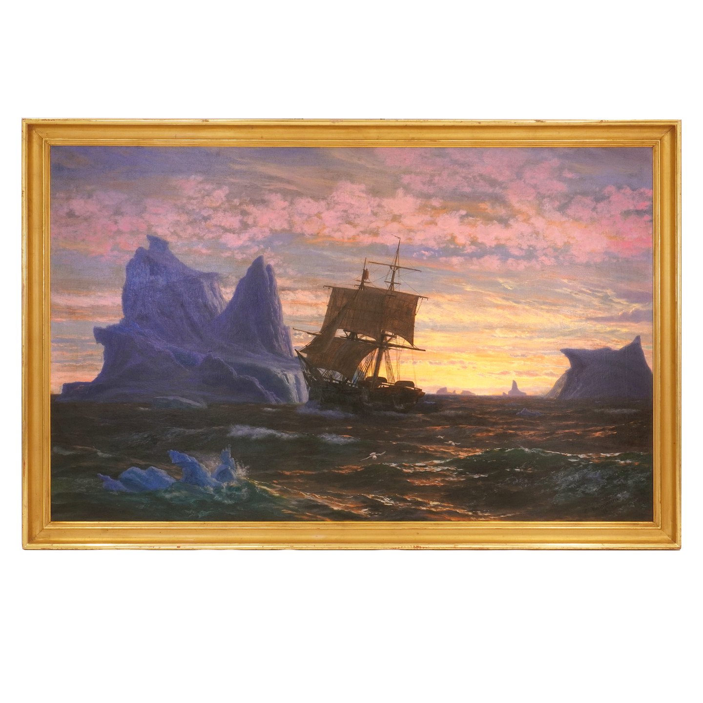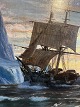 Jens Erik Carl Rasmussen, 1841-93, oil on canvas. Ship at the coast off Greenland. Signed and dated 1872. Visible size: 98x156cm. With frame: 112x170cm