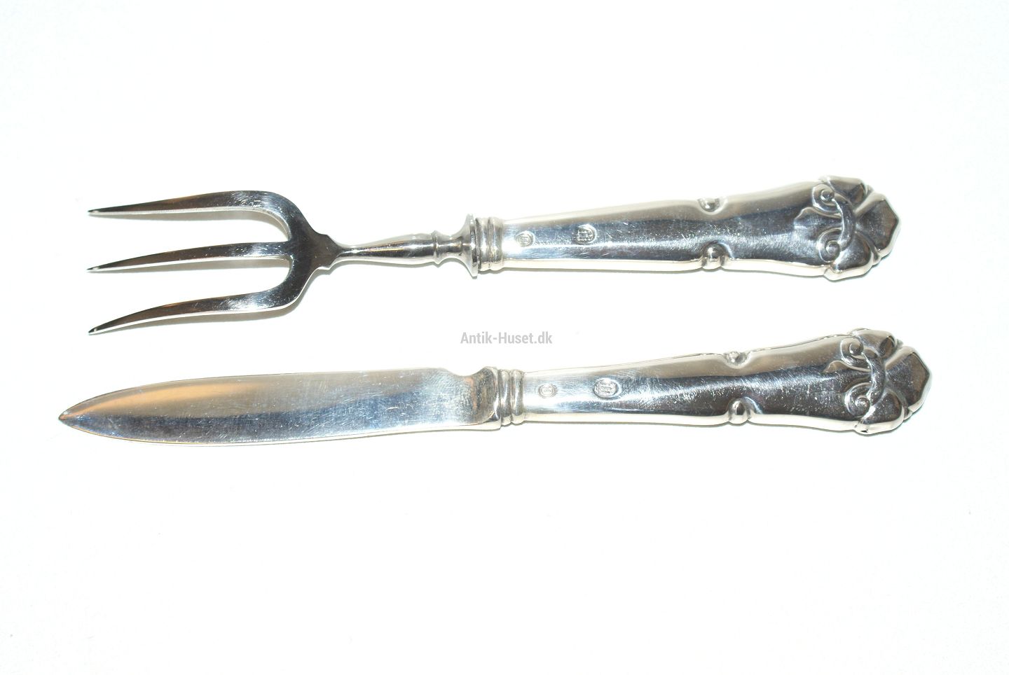 Fruit / Dessert cutlery French lily Silver Knife Length 17 cm. Fork Length 16 cm. Beautiful and well maintained The cutlery is polleret and packed in a bag.