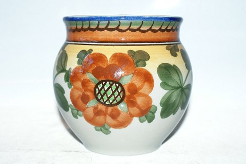 Aluminia faience beer mug with painted floral motif. East Jutland Breweries, Ceres, Horsens, Fredericia and Vejle. Dated 1909. Polychrome decoration. Height: 10 cm.