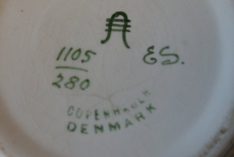 Alumina Vase with Purple Asta on a yellow background Manufactured in 1903 Approx Dek.nr. 1105/280 Diameter 11 cm. Height 10.5 cm. Beautiful and well-kept condition.