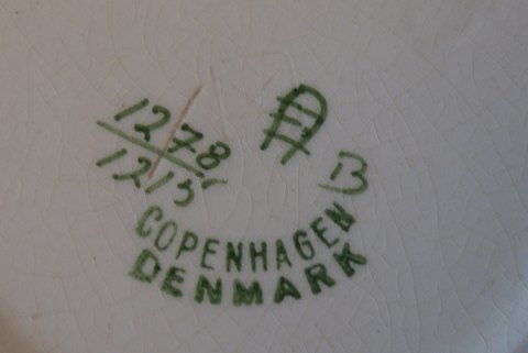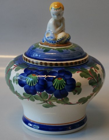 Alumina Bonbonniere 525 with Mermaid with blue bell flowers and green vines Manufactured in 1924 Approx Dek.nr. 1278/1215 Diameter 13.5 cm. Height 16.5 cm. Beautiful and well-kept condition.