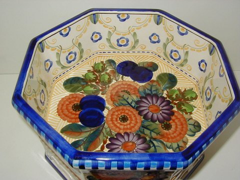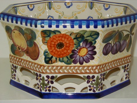 Aluminia, Large bowl with pierced border, decoration number 732/299, measures 26.5 by 15 cm. Excellent condition.