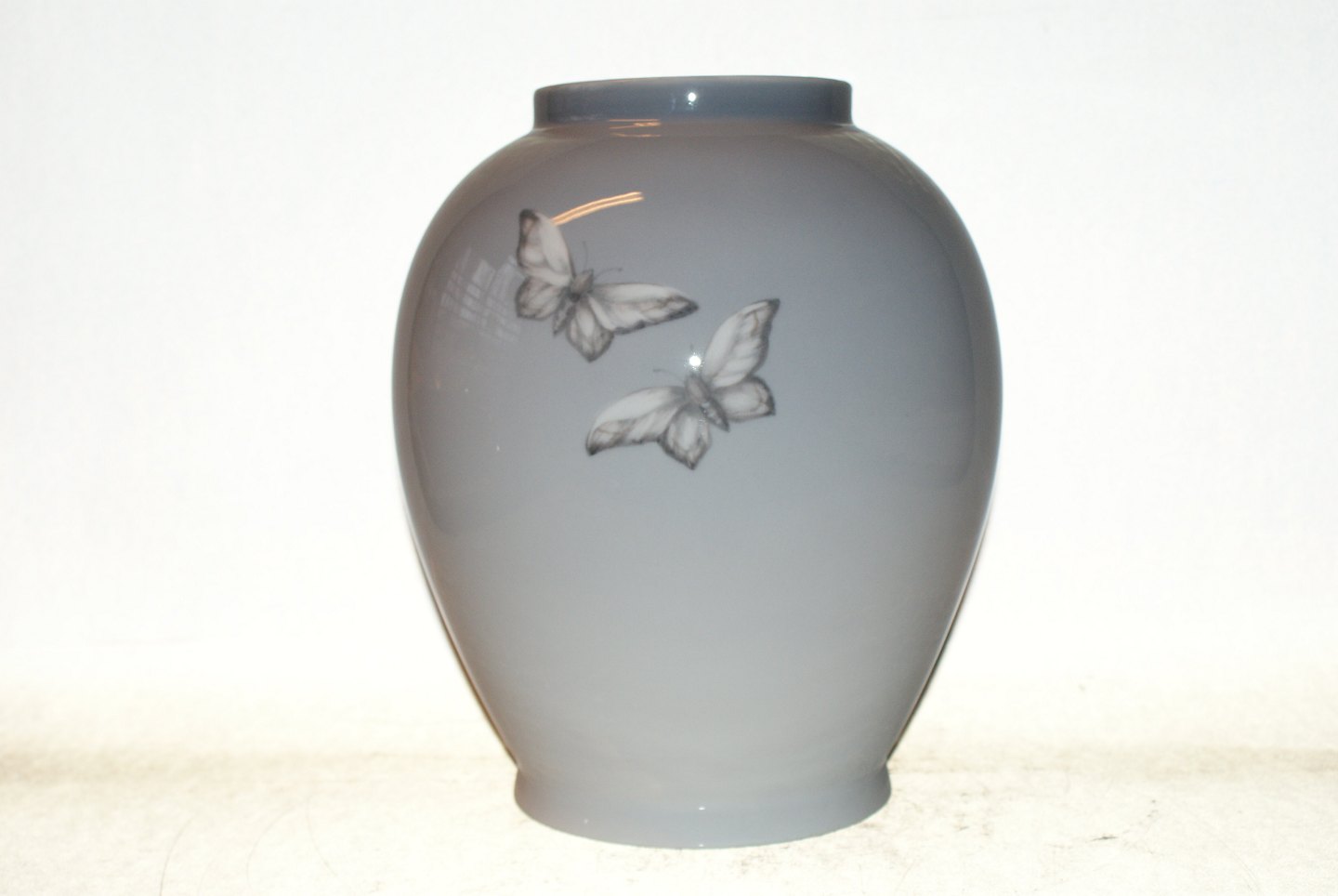 Stor Kongelig Vase dekoreret med Blomster og Sommerfugl Dek. nr. 2650-35B 2.Sortering Højde 30,5 cm. Diameter ca 25 cm. Velholdt stand