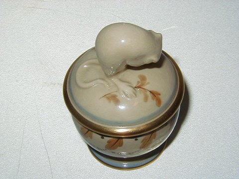 Aluminia Fall (Efteraar), Lidded Bowl with Mouse on Top. Number 408/846. Height 10 cm. Perfect condition.