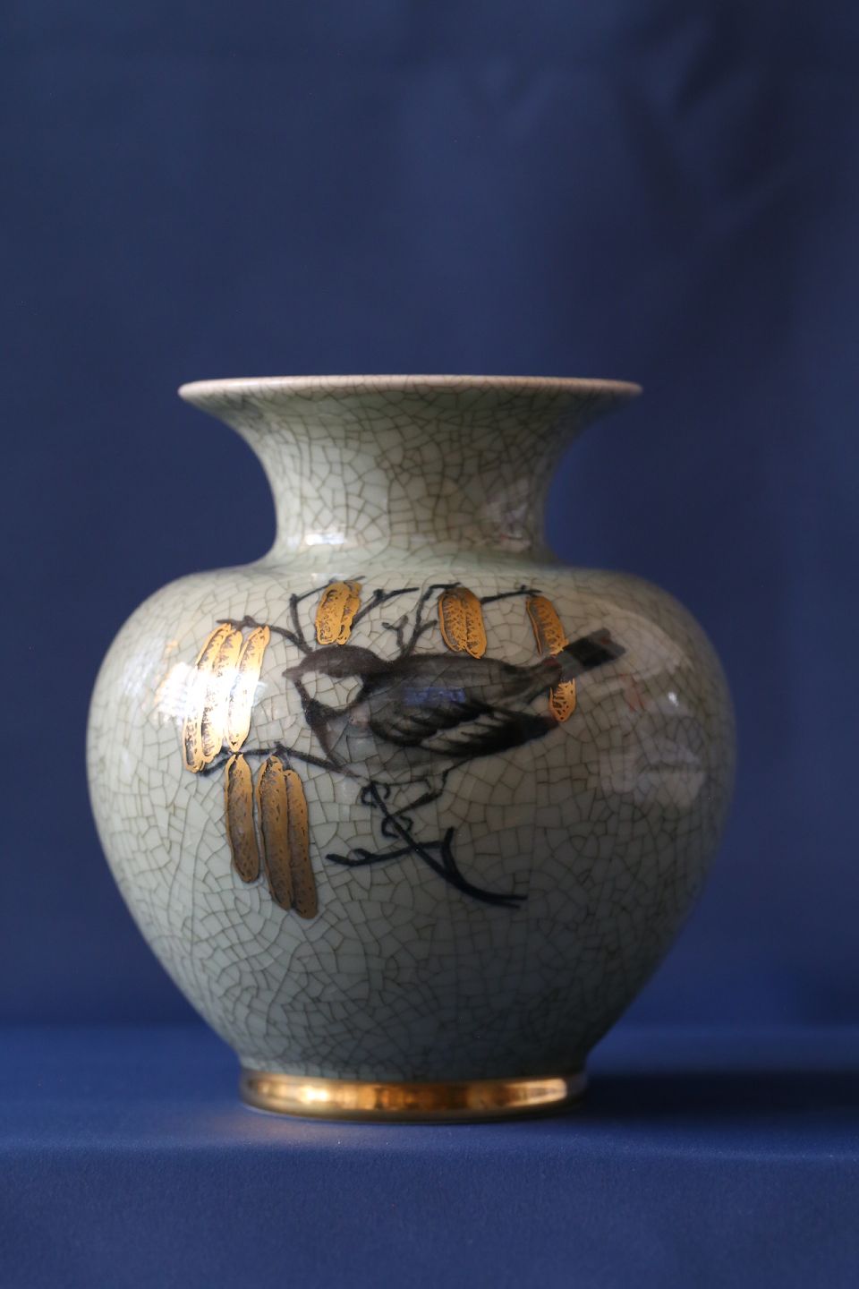 Denne lille vase fra Royal Copenhagen, er bemalet med birkerakler og fugle, samt udført som krakeleret porcelæn. Vasen er smuk og dekorativ på spisebordet eller i vindueskarmen.
