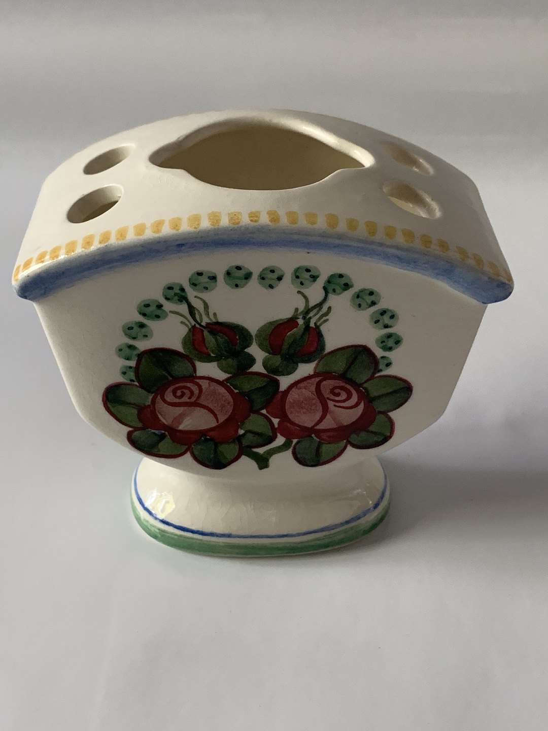 Aluminia lille vase med huller i toppen til blomster.