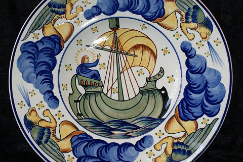 Aluminia Fajance Julevaser. Til venstre fra 1914, den har nummer 1027/855. 12,5 cm. høj. Til højre 1916 med nummer 1111/979, højde 14 cm. Solgt