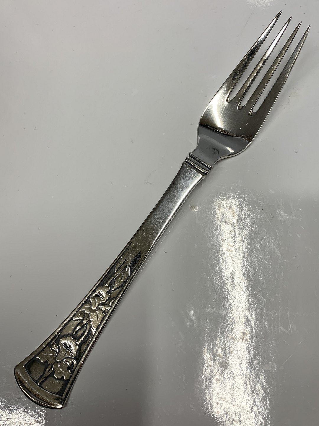 Orchide / Orkide Middagsgaffel i Sølv Længde 19 cm Fremstillet hos Horsens Sølvsmedie, Orkide sølvbestik 830s Pæn og pudset stand Pakket i pose