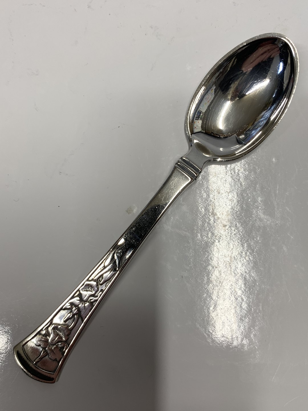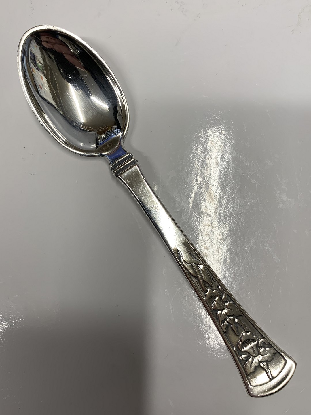 Orchide / Orkide Te / kaffeske i Sølv Længde 11,8 cm Fremstillet hos Horsens Sølvsmedie, Orkide sølvbestik 830s Pæn og pudset stand Pakket i pose