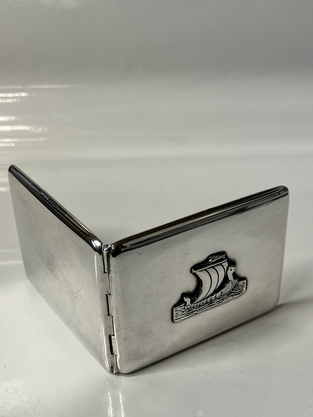 Cigaret etui / Kort etui Sølvplet motiv skib