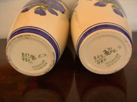 To flotte Aluminia vaser med dekorationsnummer 843/480. De måler 23 cm. i højden. Fejlfrie.