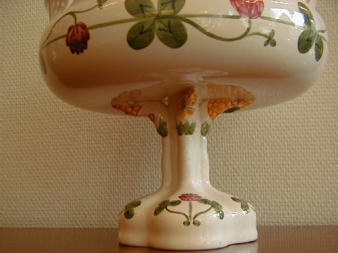 Large Aluminia Bowl on stand, "Rødkløver", decoration number 181/265, diameter 25 cm., height 22 cm. Has small hairline crack otherwise in excellent condition.
