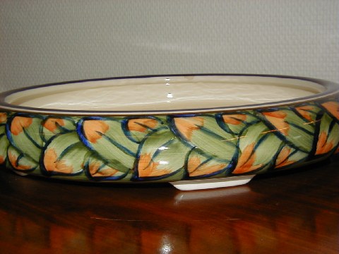 Large Aluminia Bowl, richly decorated, standsd on five feet, number 1288/1235, diameter 30.5 cm., perfect condition.