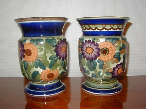 Two Aluminia Vases, richly decorated, height 16 cm. Excellent condition.