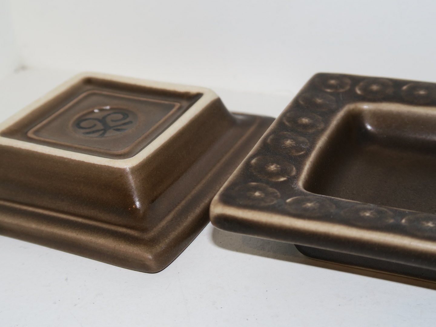 Kronjyden Umbra stentøj, lille firkantet asiet. Designet af Jens Harald Quistgaard. Måler 9,0 x 8,8 cm. Perfekt stand uden fejl.