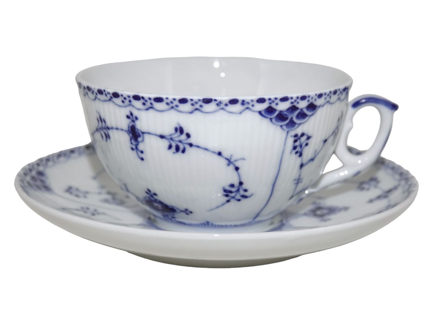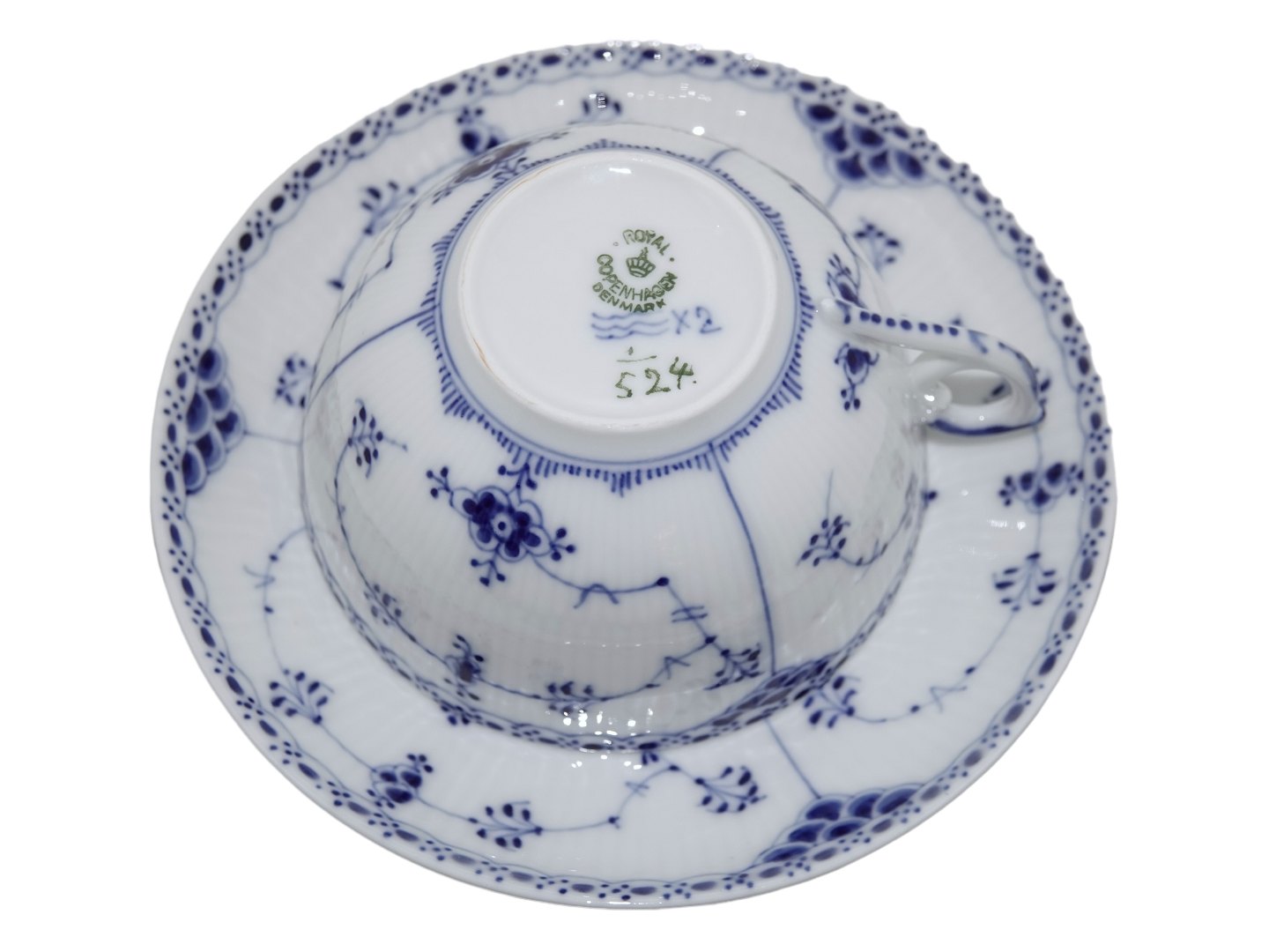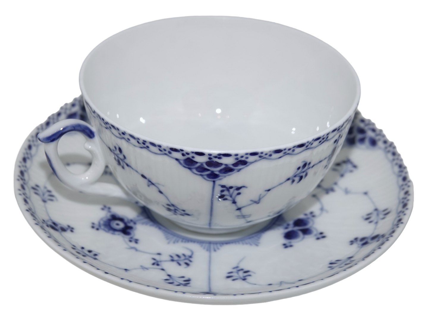 Royal Copenhagen Blue Fluted Half Lace, huge tea cup (breakfast cup). Decoration number 1/524. The cup is factory first, the saucer is factory second. The cup measures 11.0 cm. Perfect condition.