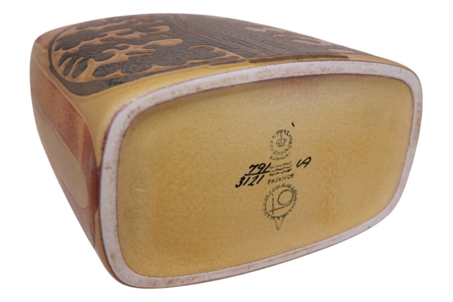 Royal Copenhagen Baca, gul vase. Designet af Johanne Gerber. Dekorationsnummer 791/3121. 1. sortering. Højde 19,4 cm., bredde 14,0 cm. Perfekt stand uden fejl.