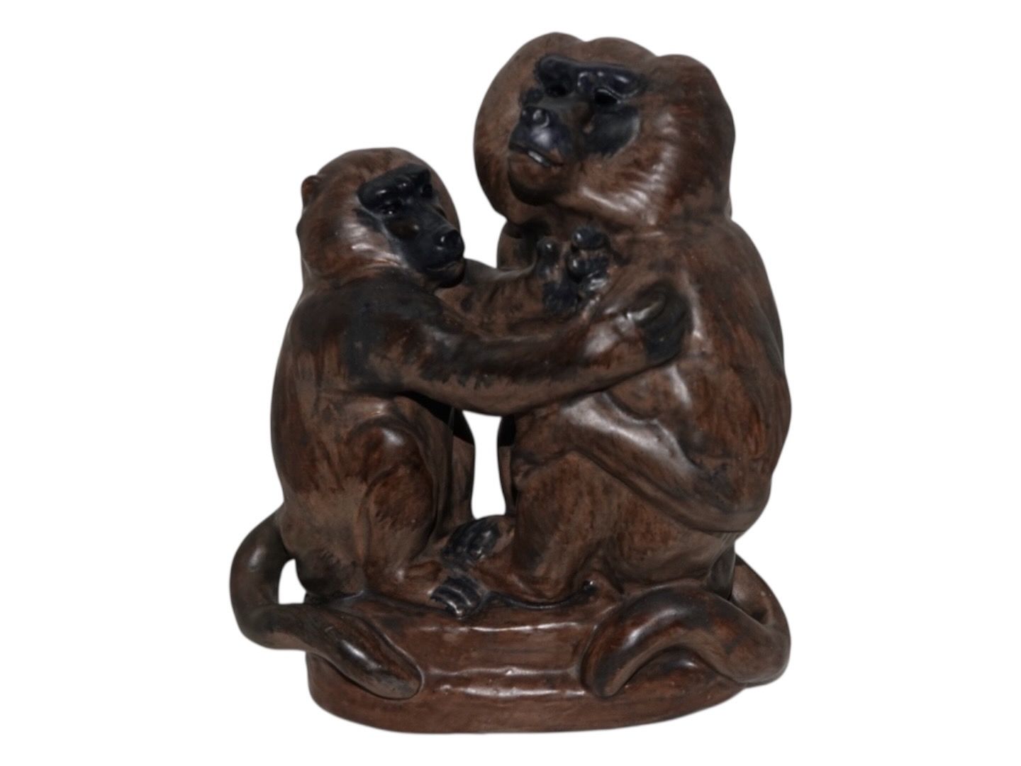 Large Arne Ingdam art pottery figurine, two monkeys.