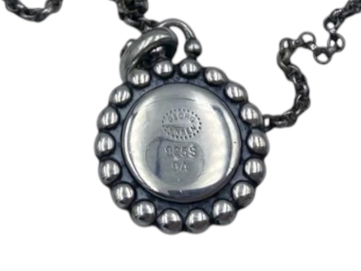 Kæden måler 46,0 cm., vedhænget måler 1,2 cm. i diameter.