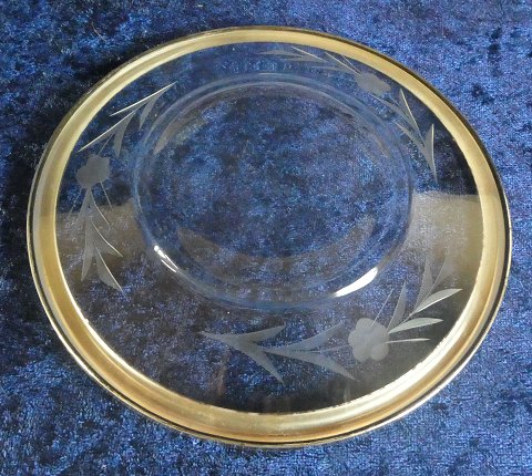 Flaskebakke eller bordskåner 15cm af glas med sterling sølvkant.