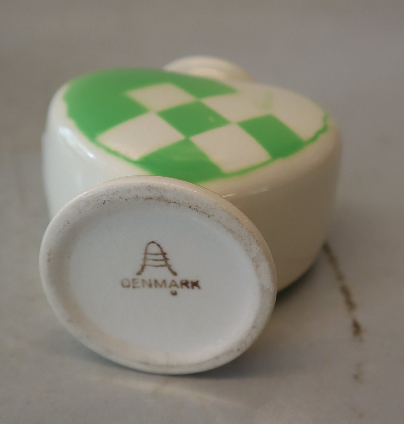 Royal Copenhagen Aluminia 2231 Design Hans Henrik Hansen 1940 fajance Lysegrøn Hjerte lysestage Hjertestager. God brugt stand