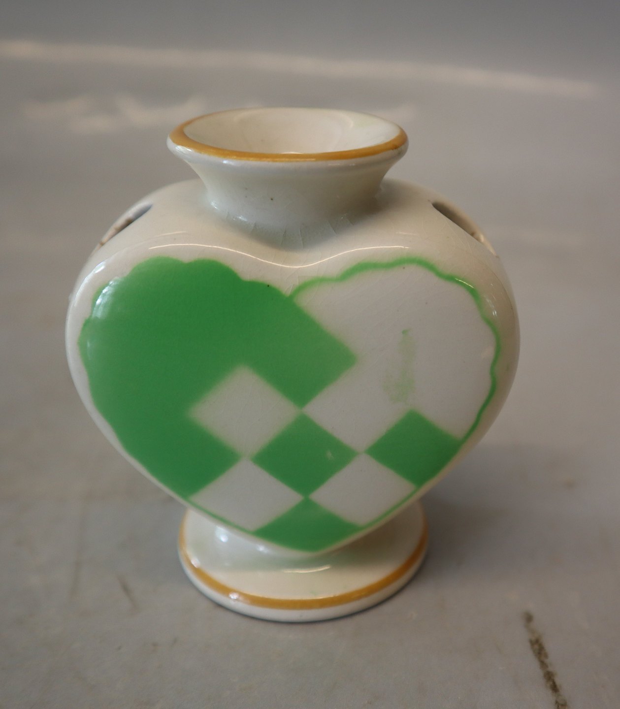 Grøn Hjertevase 7,5, i fin stand stemplet Royal Copenhagen Faience Julehjerte Julevase