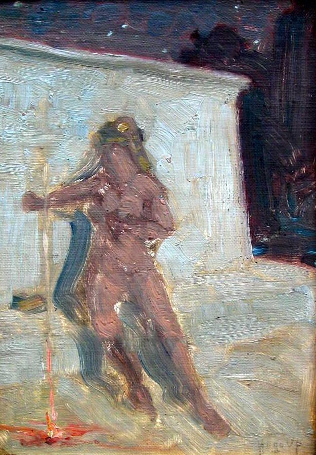 Pedersen, Hugo V. (1870 - 1959) Danmark: Cleopratra. Olie malt skitse på lærred. 24 x 17 cm. Signeret: Hugo V. P. Dette værk er et forstudie til Pegasus maleri med lot. no. 6644.