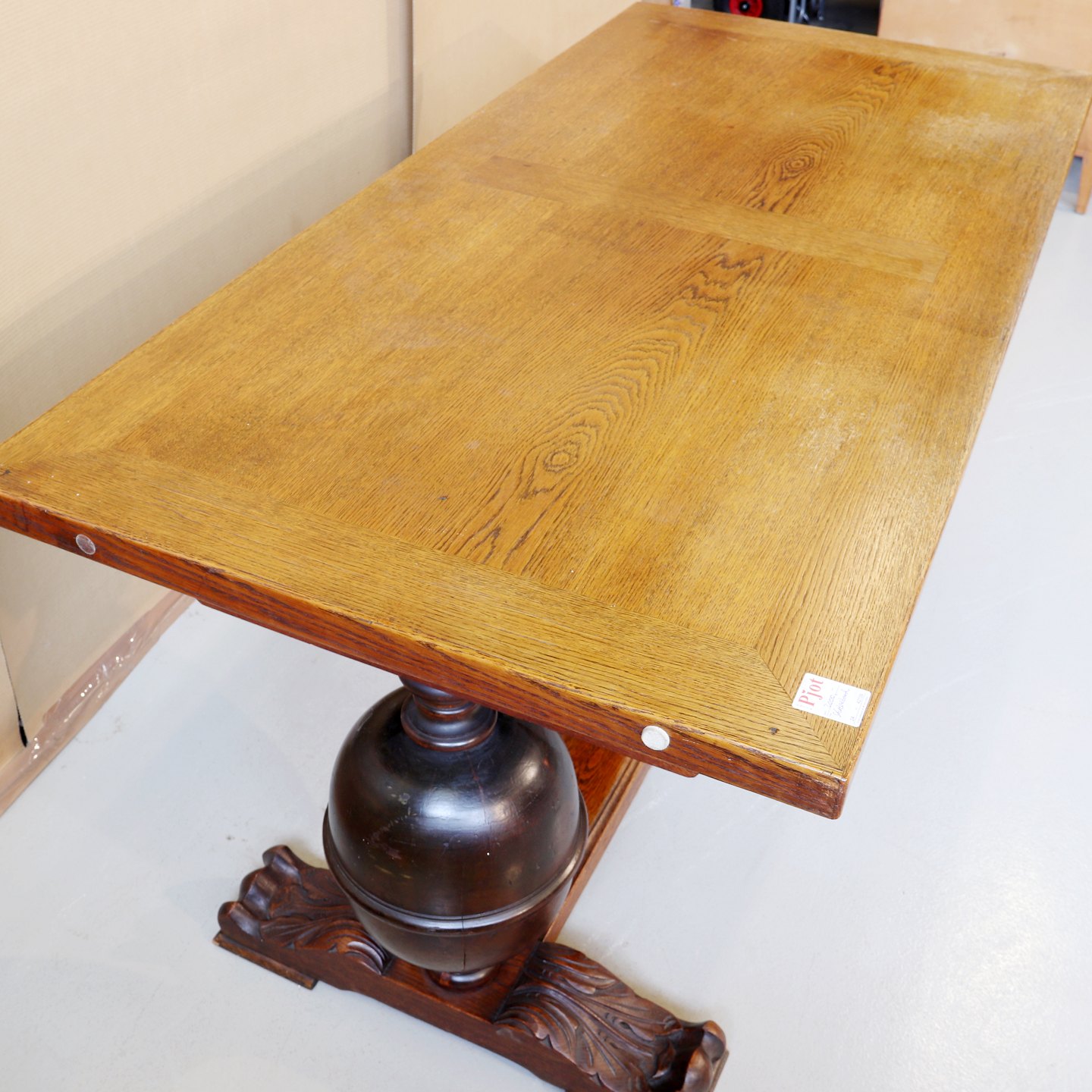 Skrivebord i bejdset, fineret og lakeret egetræ m. skuffe, i renæssancestil,