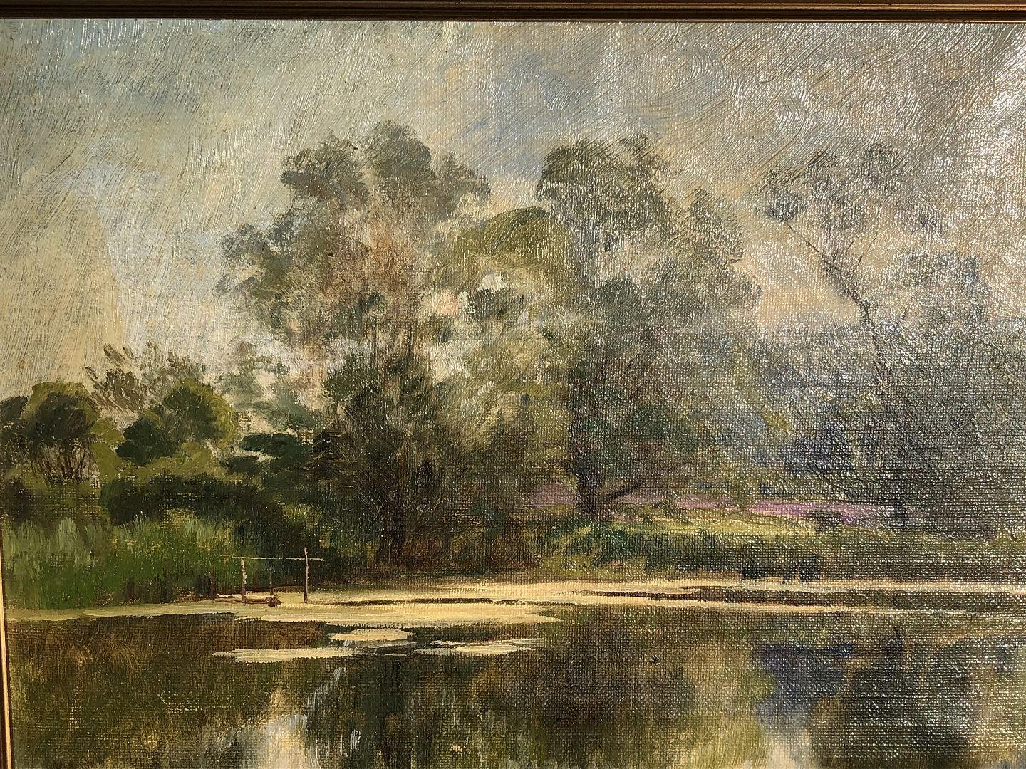 Christian Zacho (1843-1913) oil painting on canvas. Signed C.Z. on the back inscribed Zacho: Bondedammen i Hellebæk. 23x33 cm (34x44).