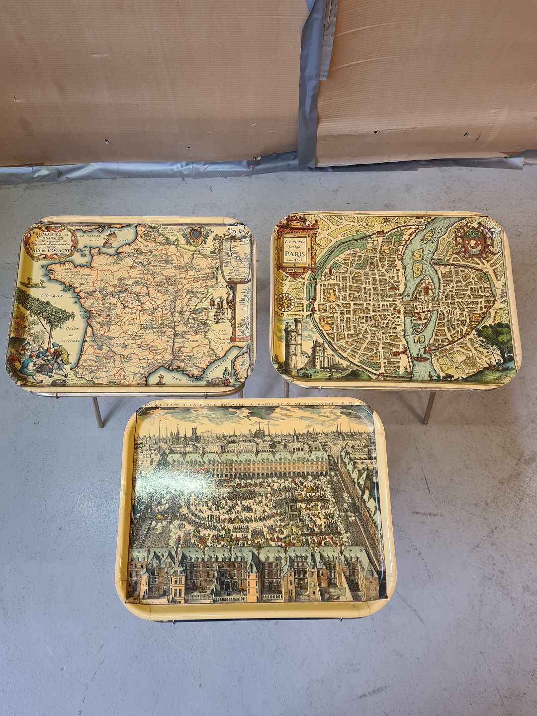 3 Små bakkeborde i metal og plast, fra 1980-1990erne.
