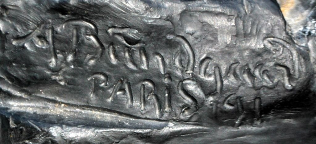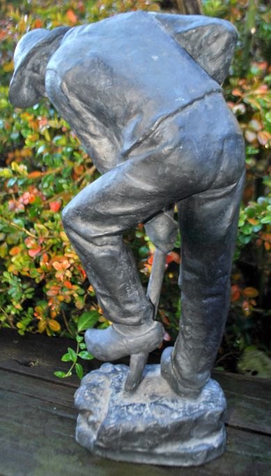 Bundgaard, Anders Jensen (1864 - 1937) Danmark: En gravende mand. Signeret: A. Bundgaard, Paris 1891. Sort ler. H: 37 cm.