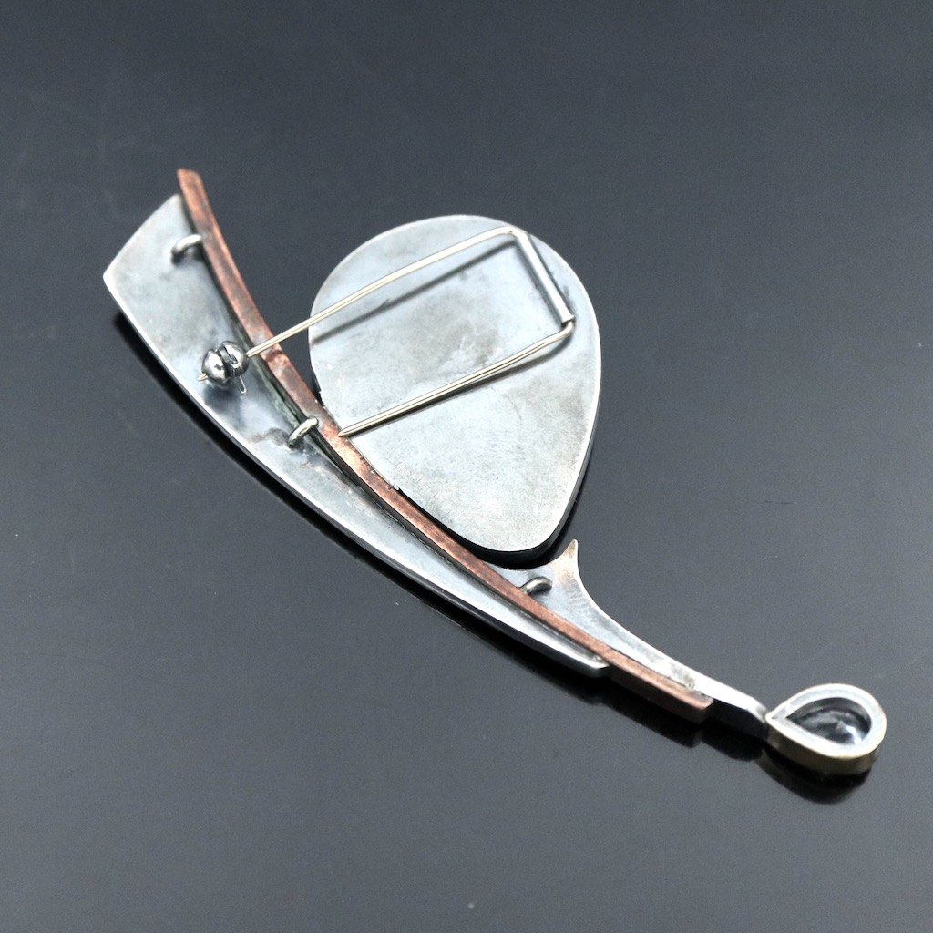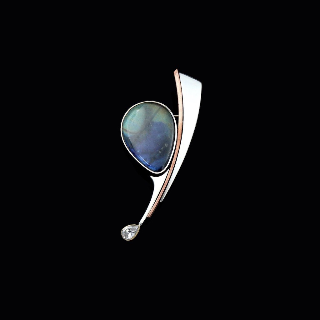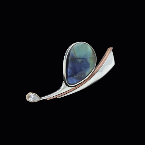 Birgitte Buchhave Munch. Broche i sterling sølv med spectrolit og 14k guld og topaz.