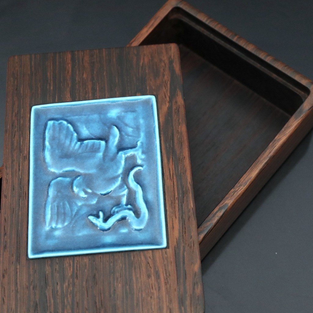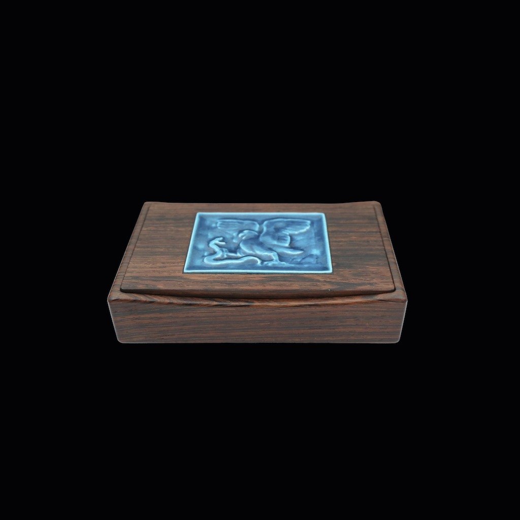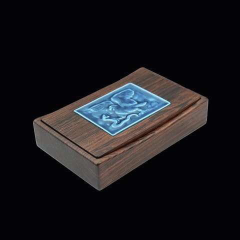 Royal Copenhagen / Knud Kyhn. Æske i palisander relief i glaseret stentøj.