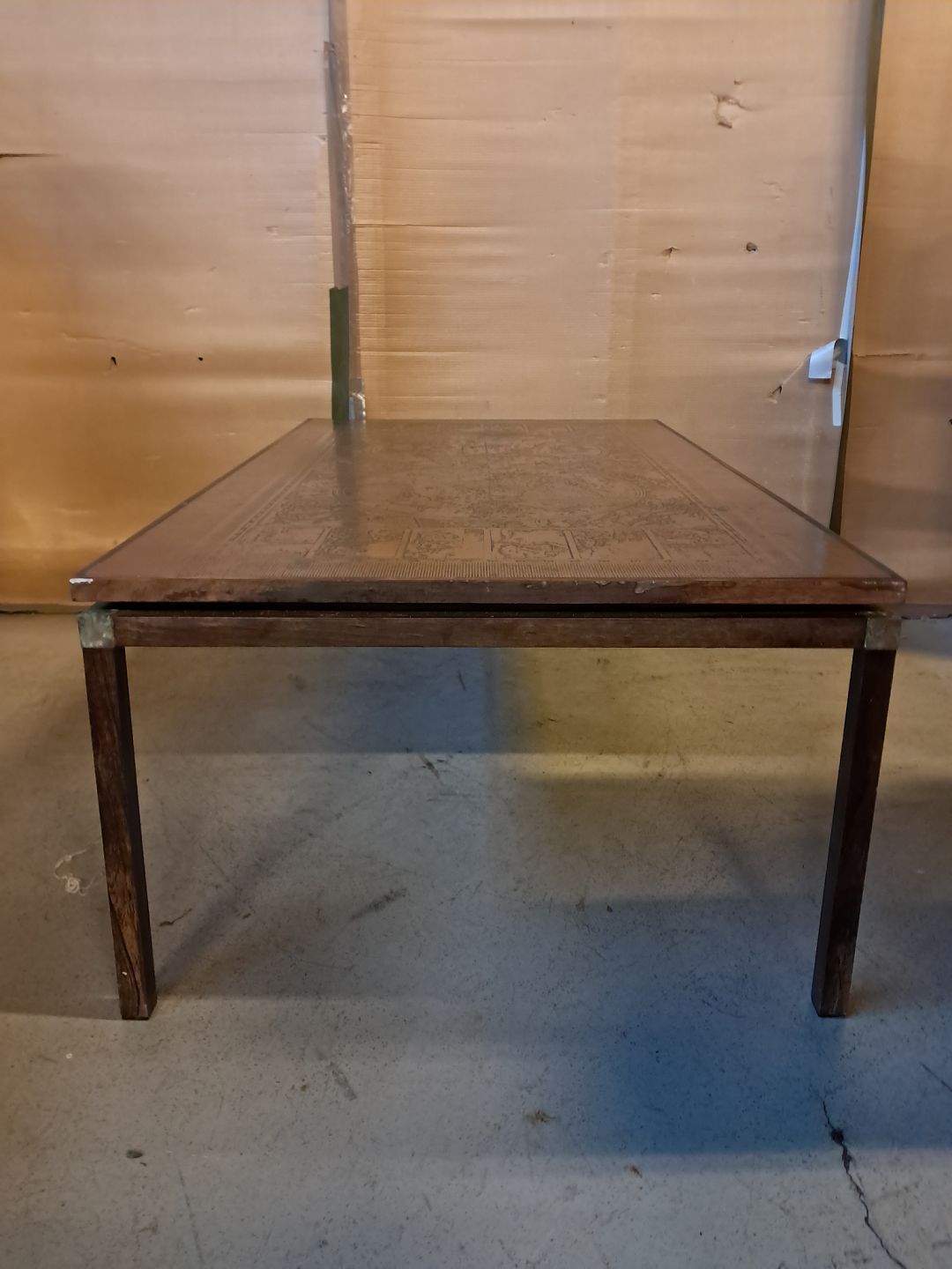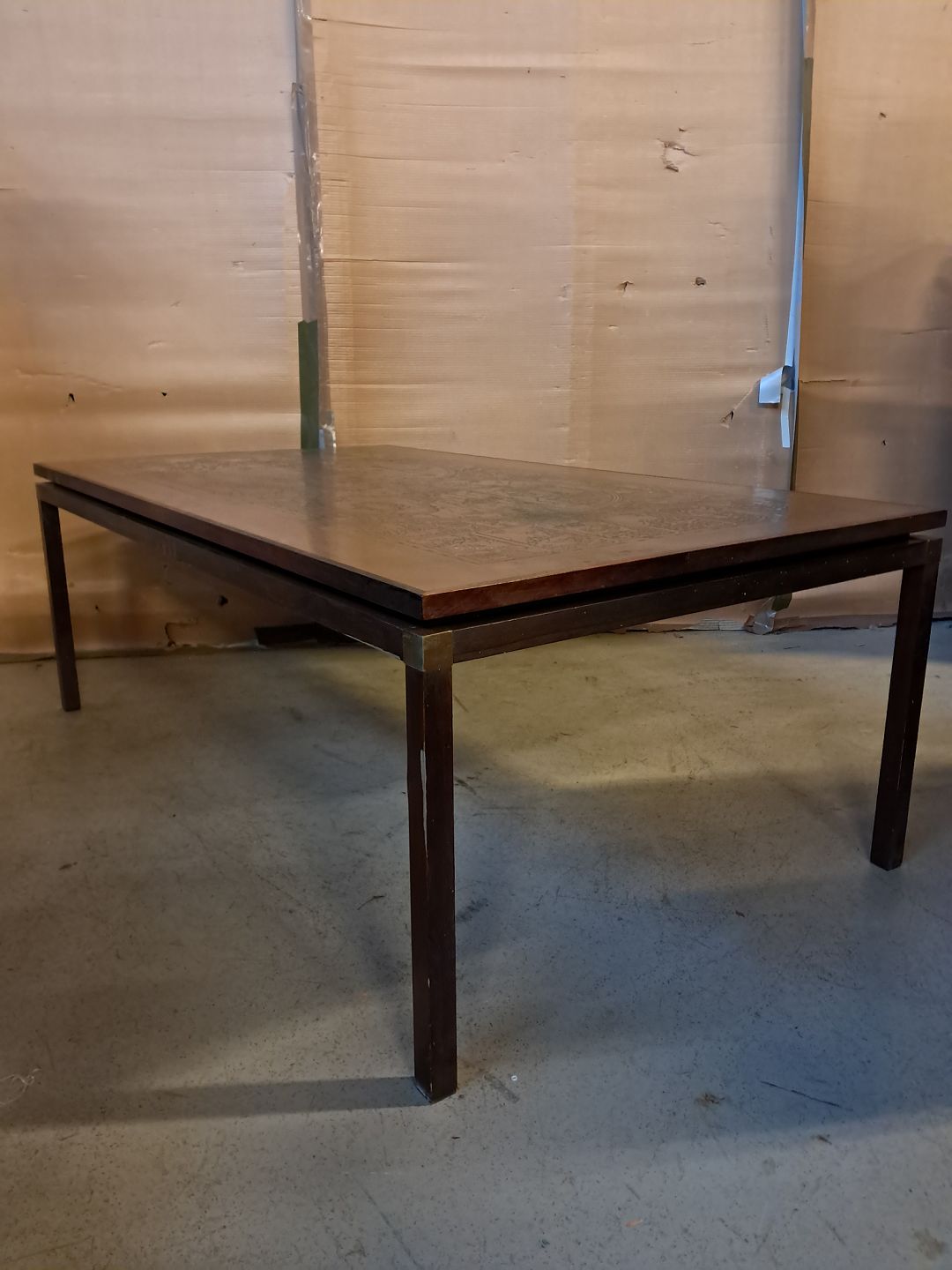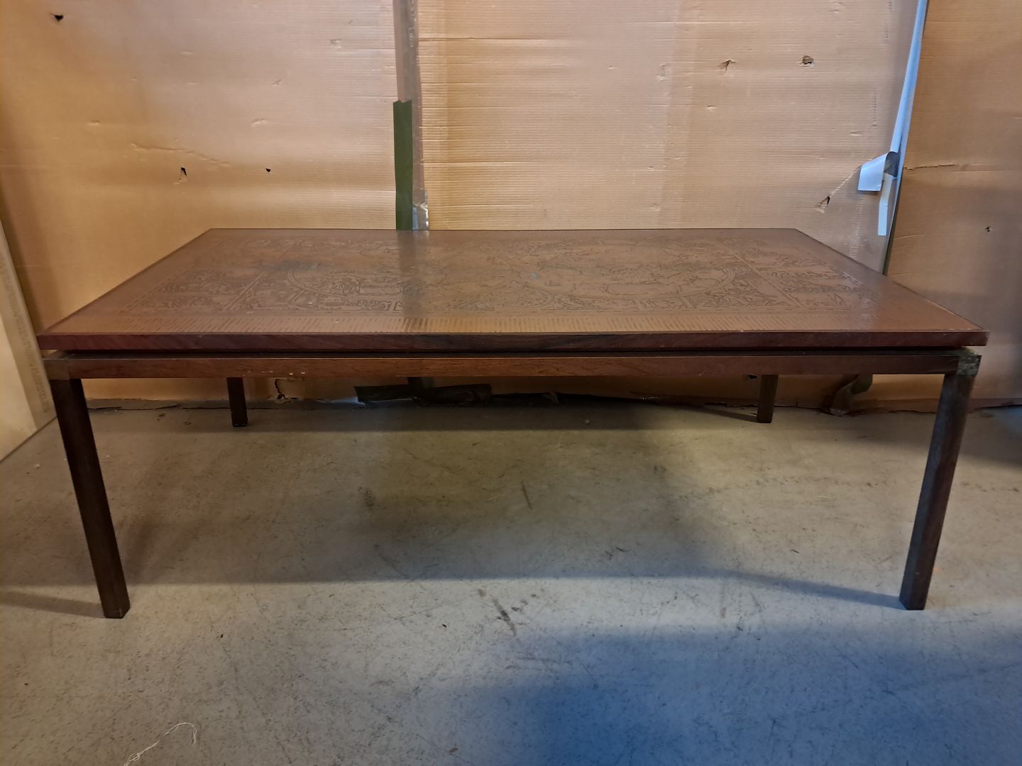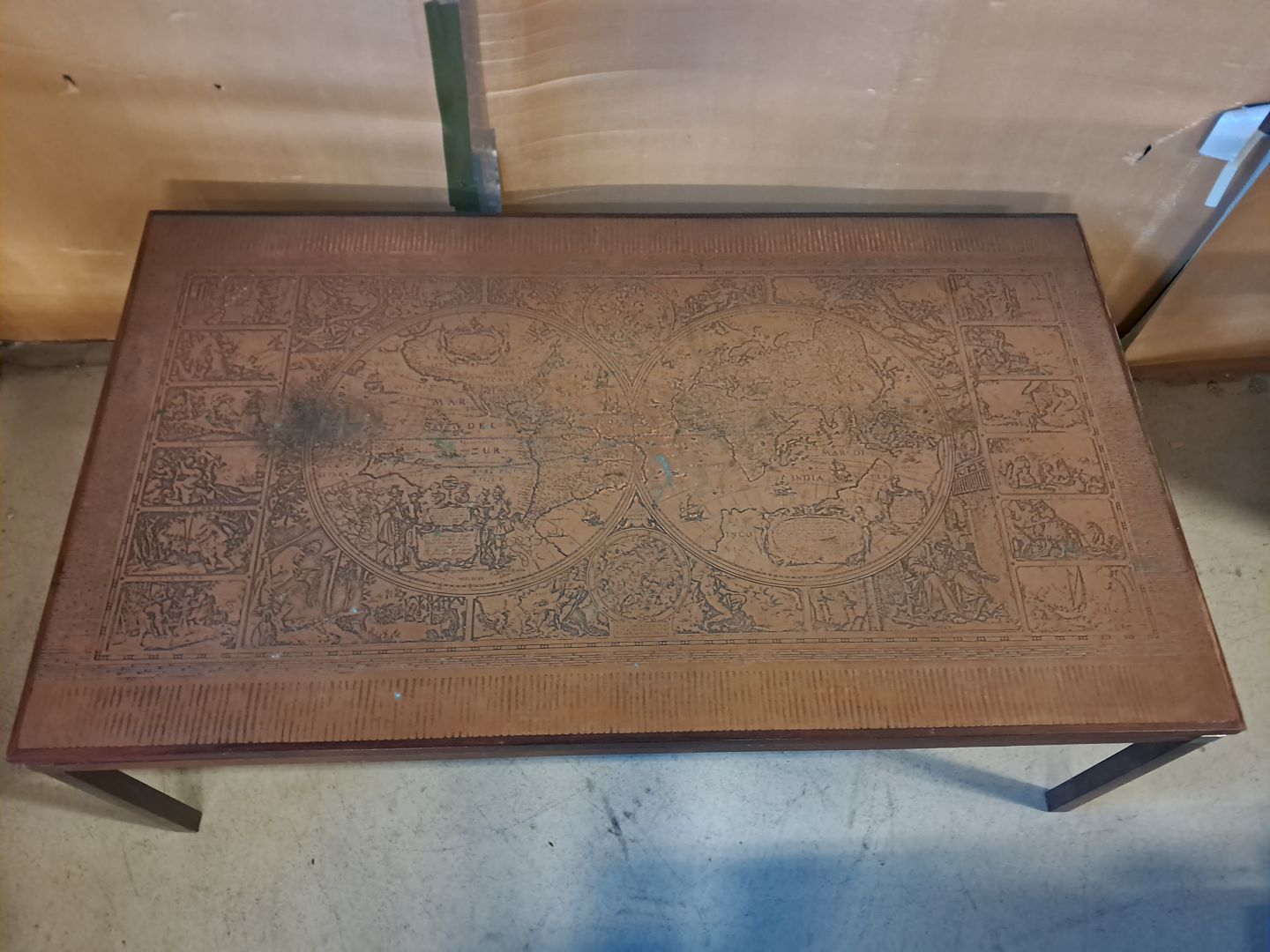 Sofabord i palisander og metalplade med verdenskort, fra 1980erne.