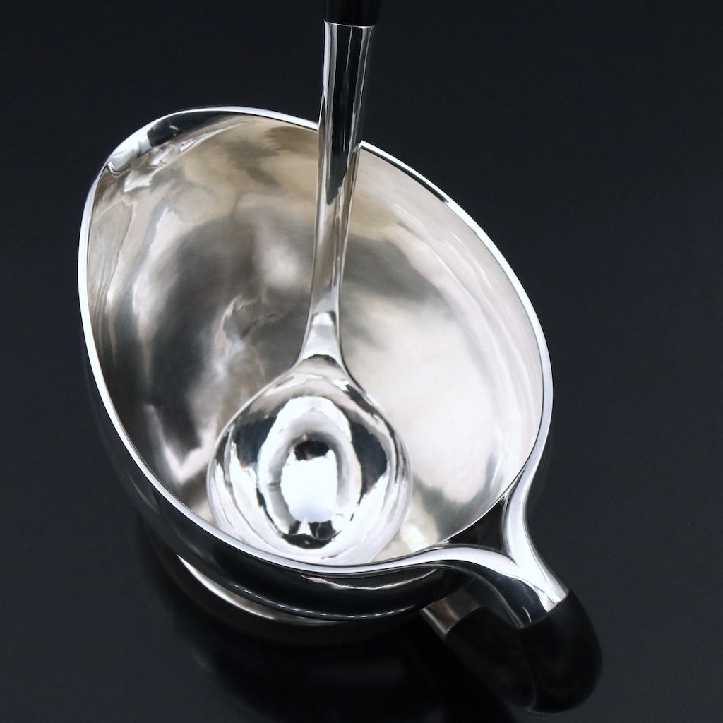 Aage Weimar. Art deco saucekande i sterling sølv med tilhørende ske.