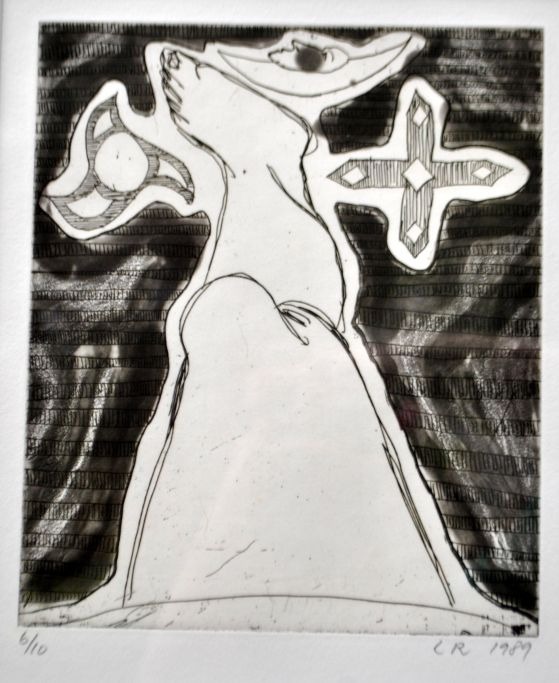 Ravn, Lars (1959 - ) Danmark: Komposition, 1989. Radering. Signeret: LR 1989. 6/10. H: 19,5 cm. B: 16,5 cm.