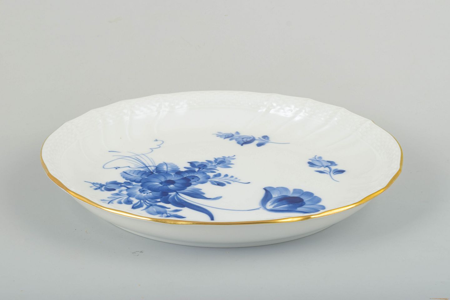 Fad i “Blå Blomst Svejfet” med guldkant, model nr. 10/1691, 1. sortering.
