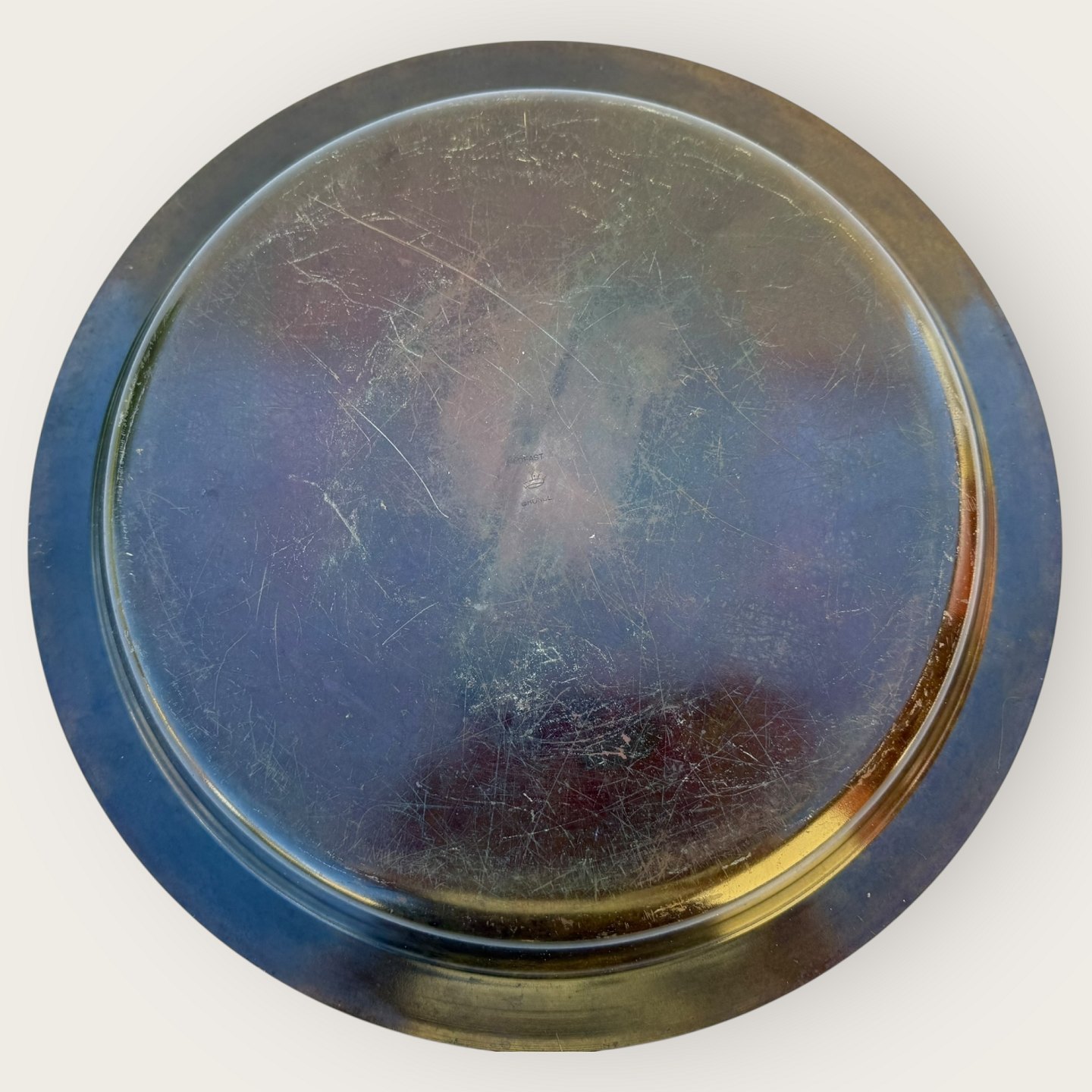 Bronze fad med skibsmotiv, Mærket: Ildfast Bronce, Diameter 32,5cm, Pæn patineret stand