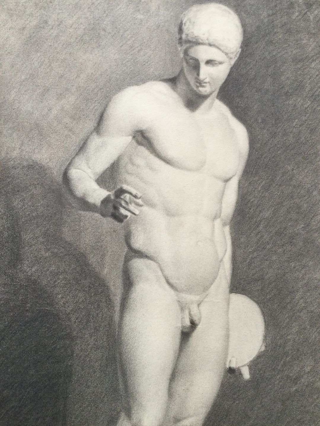 Akademitegning af Carl V. Meyer 1893 - Nøgen mand - Marmorskulptur - Diskoskasteren.