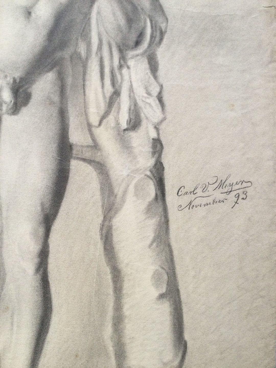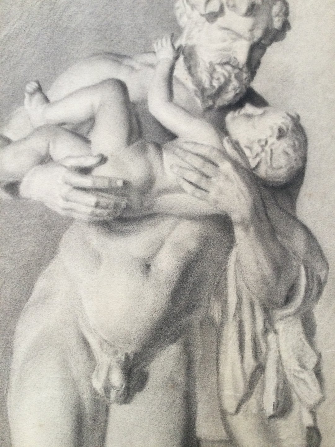 Akademitegning af Carl V. Meyer 1893 - Nøgen mand med barn - Marmorskulptur - Silenus med Dionysus.