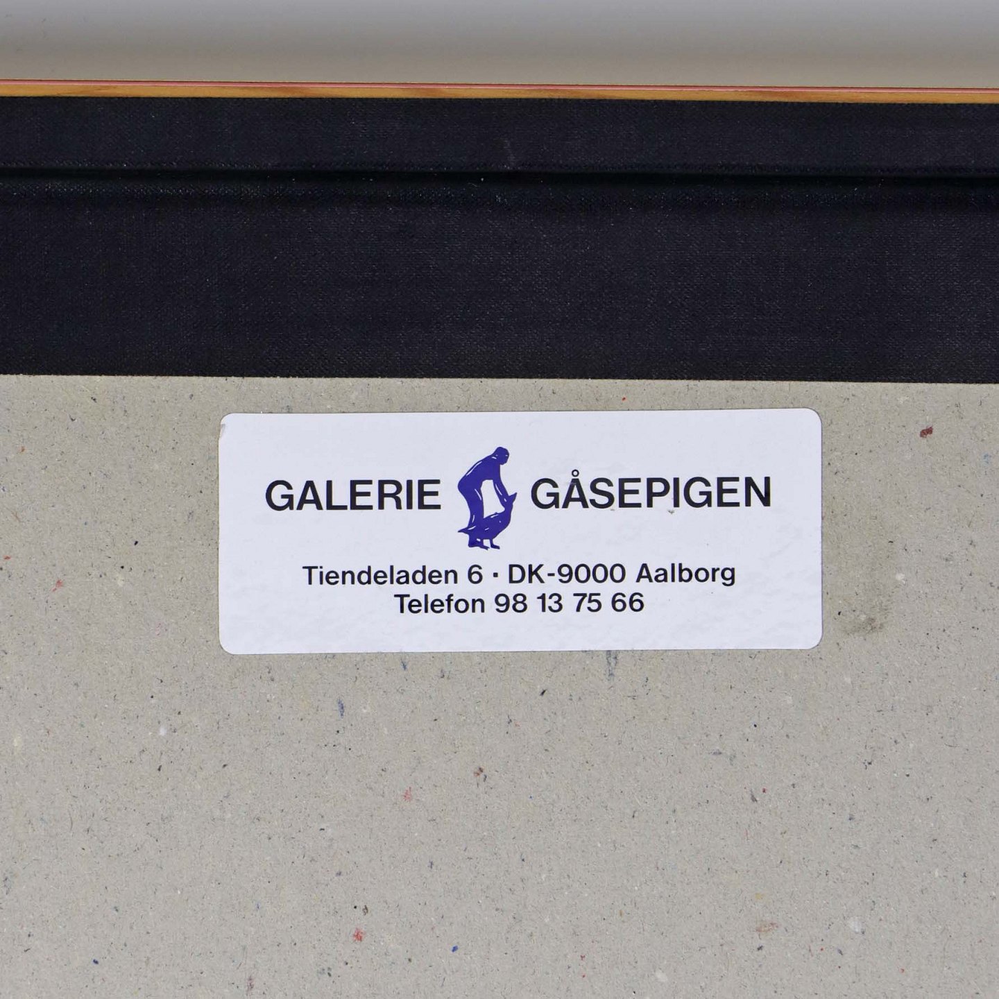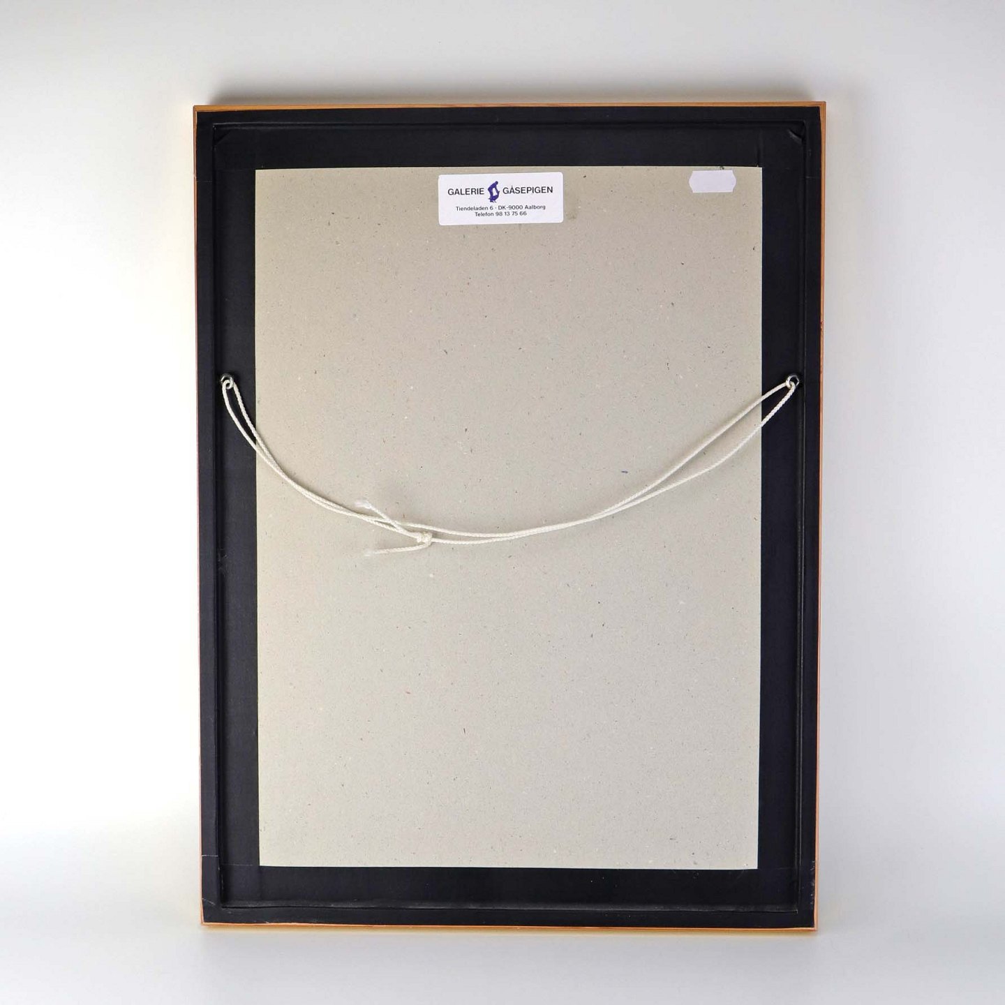 Fremstår med lettere brugsspor på rammen samt selve litografiet har løftet sig lidt fra bagvedliggende ramme ved et enkelt hjørne.