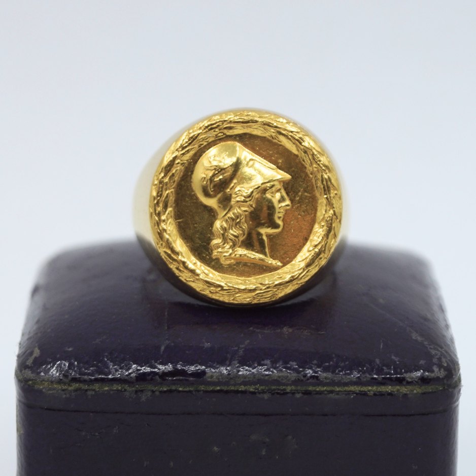 Frantz Hingelberg; Doktorring i 14 kt. guld. Plade i 23 kt. guld med motiv af Minervahoved omgivet af en laurbærkrans. Motivet at Athena/Minerva, den græsk-romerske gudinde for videnskab, har været brugt til doktorringe i Danmark siden 1866.