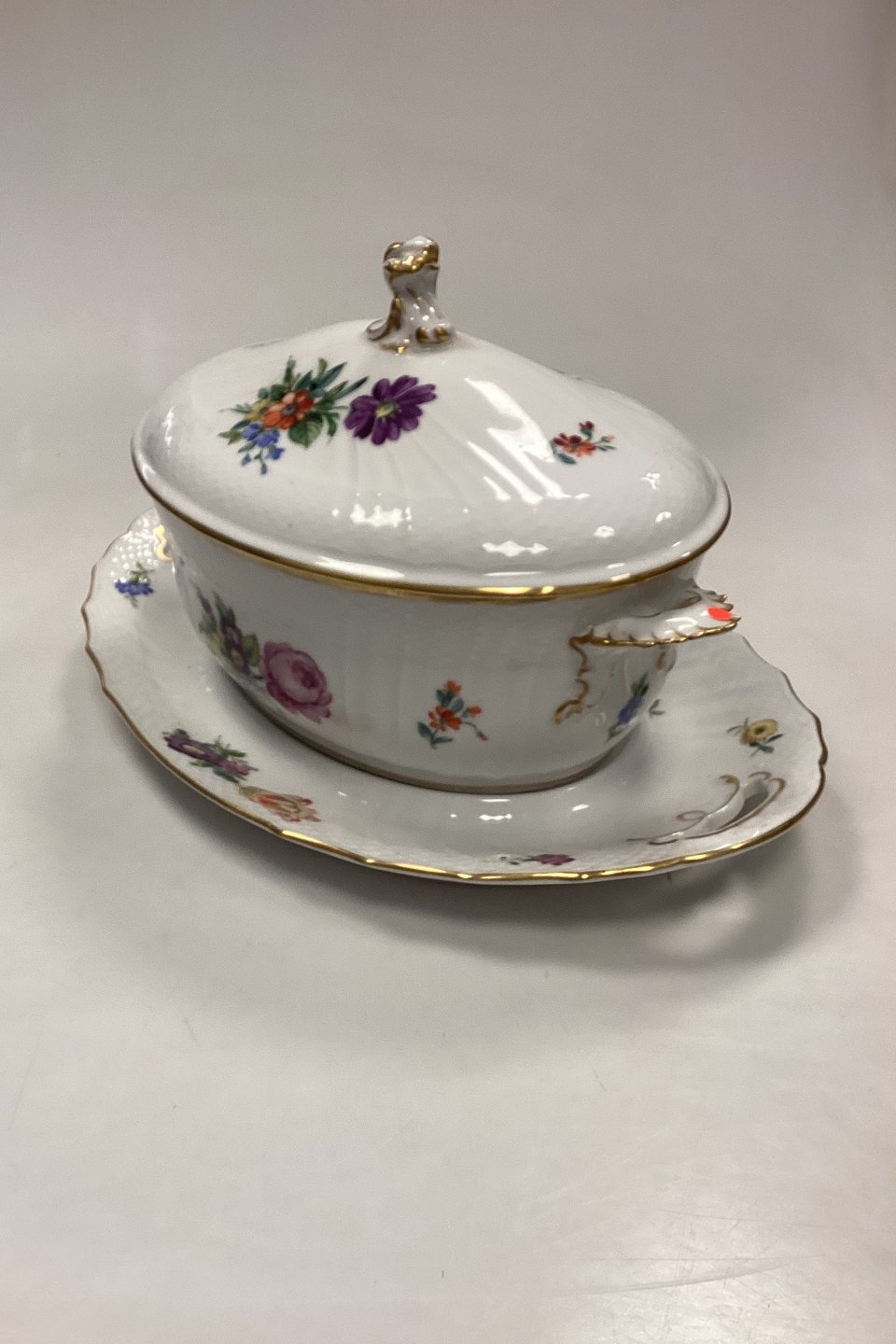Royal Copenhagen Saksisk Blomst Let Terrin No. 1666 med underfad No. 493/1671