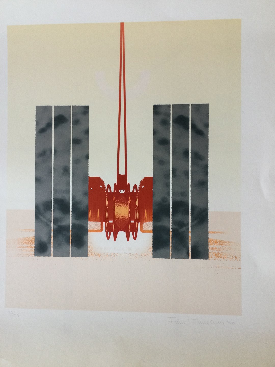 Farvelitografi af Finn Lohmann - Komposition 1990