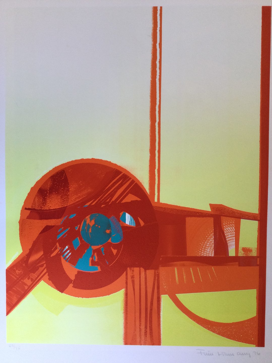 Farvelitografi af Finn Lohmann - Komposition 1976.
