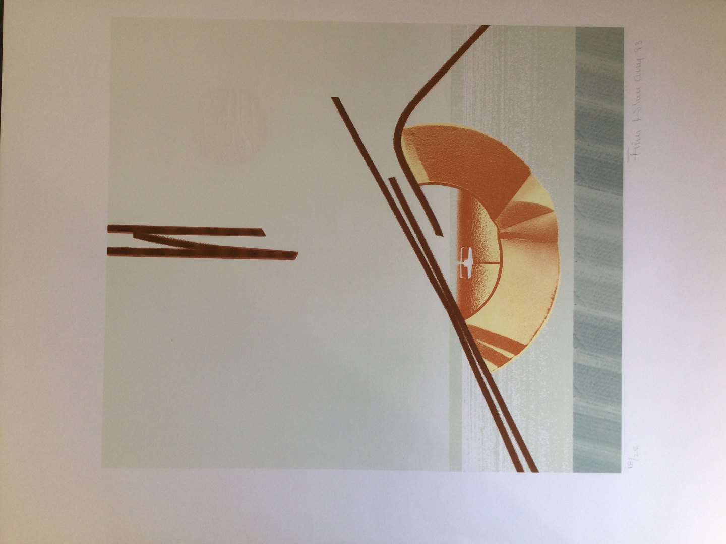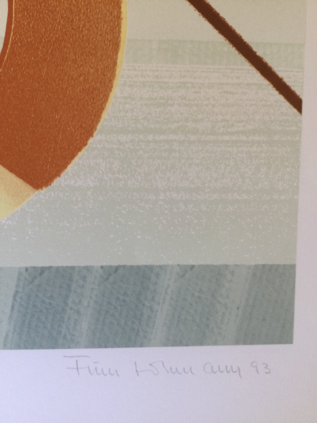 Farvelitografi af Finn Lohmann - Komposition 1993.