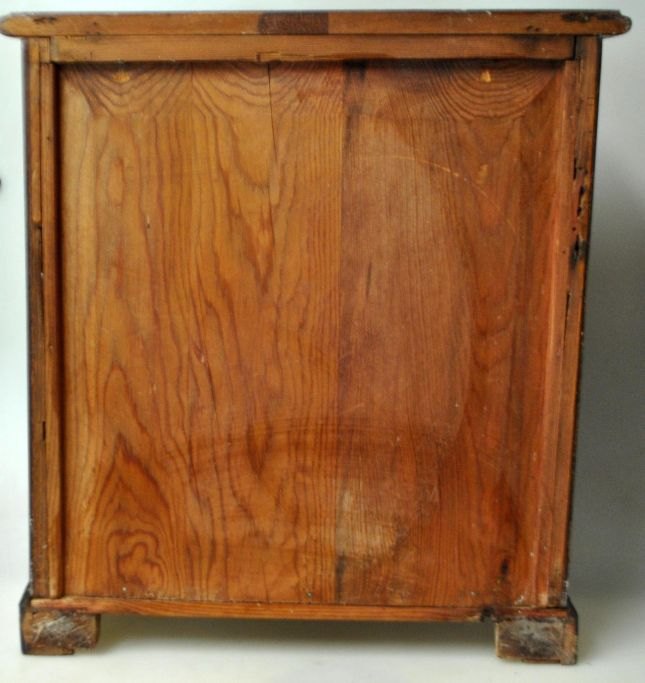 Small children's chest of drawers with 4 drawers in mahogany, 19th century. Denmark. Drawers with intarsia. H.: 33 xm. W.: 30 cm. D.: 15 cm.
