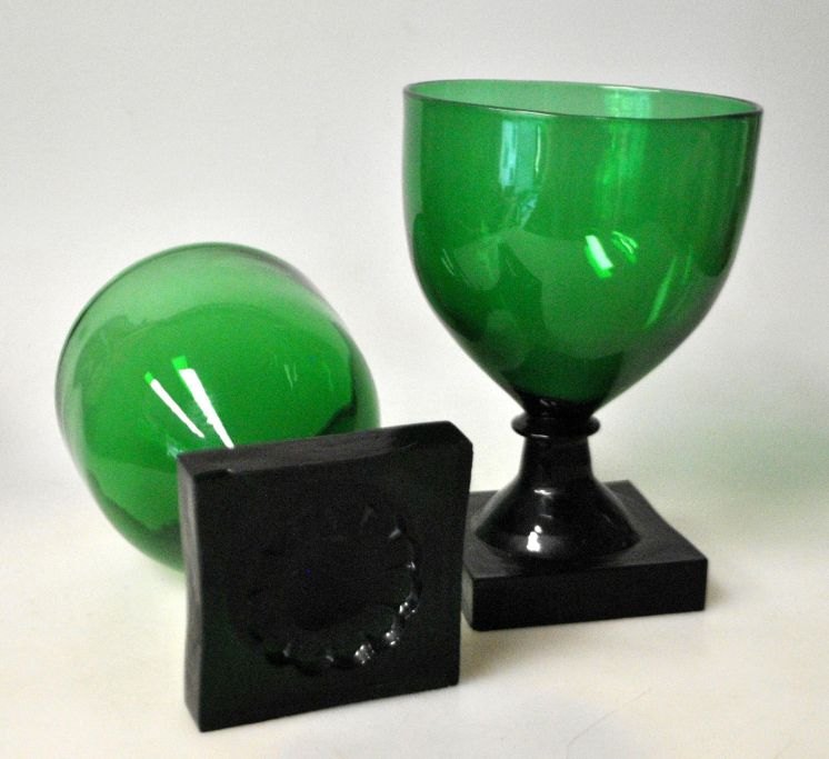 Gorm den Gamle vin glas, 19. årh. Hel grønt glas. Firkantet presset fod med mønster under bund og kugleslibning. Højde.: 13 cm.
