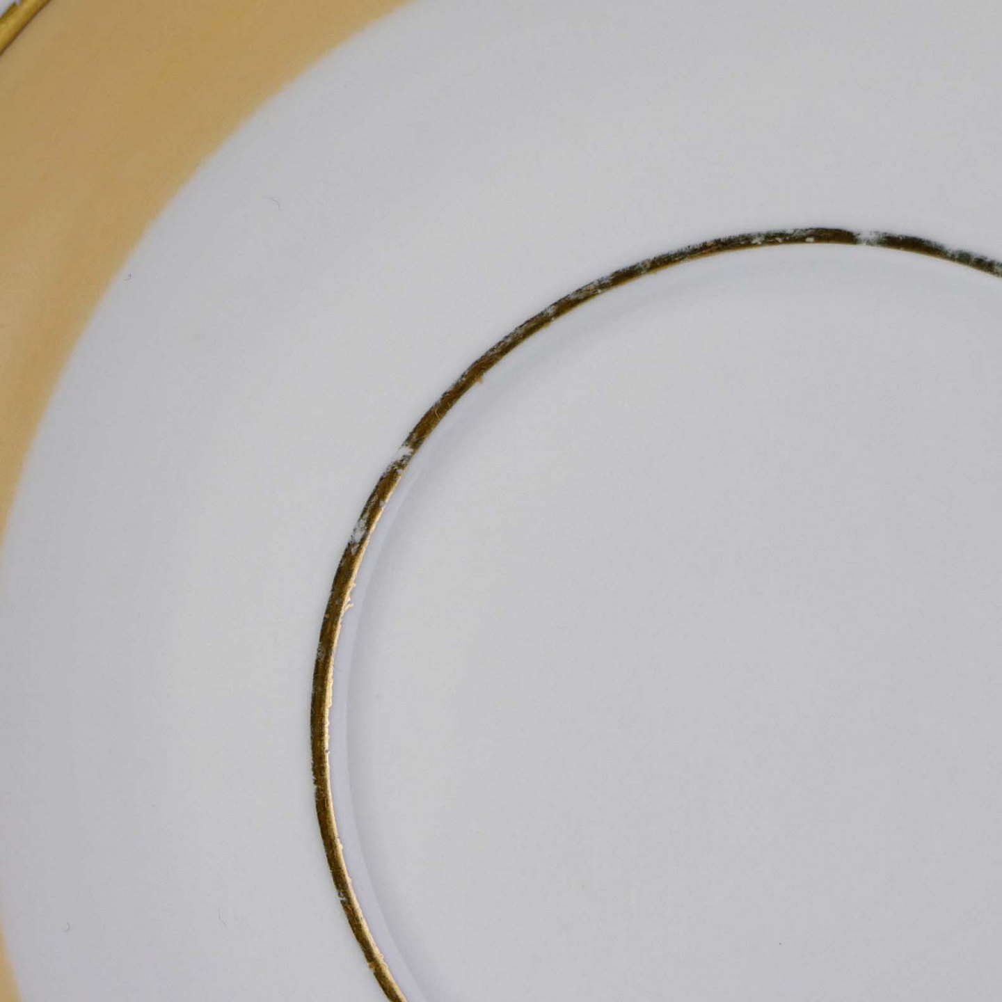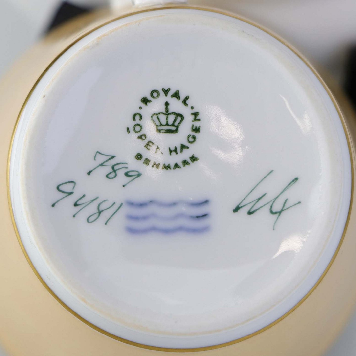 Fremstår med brugsspor på underkoppens dekoration.