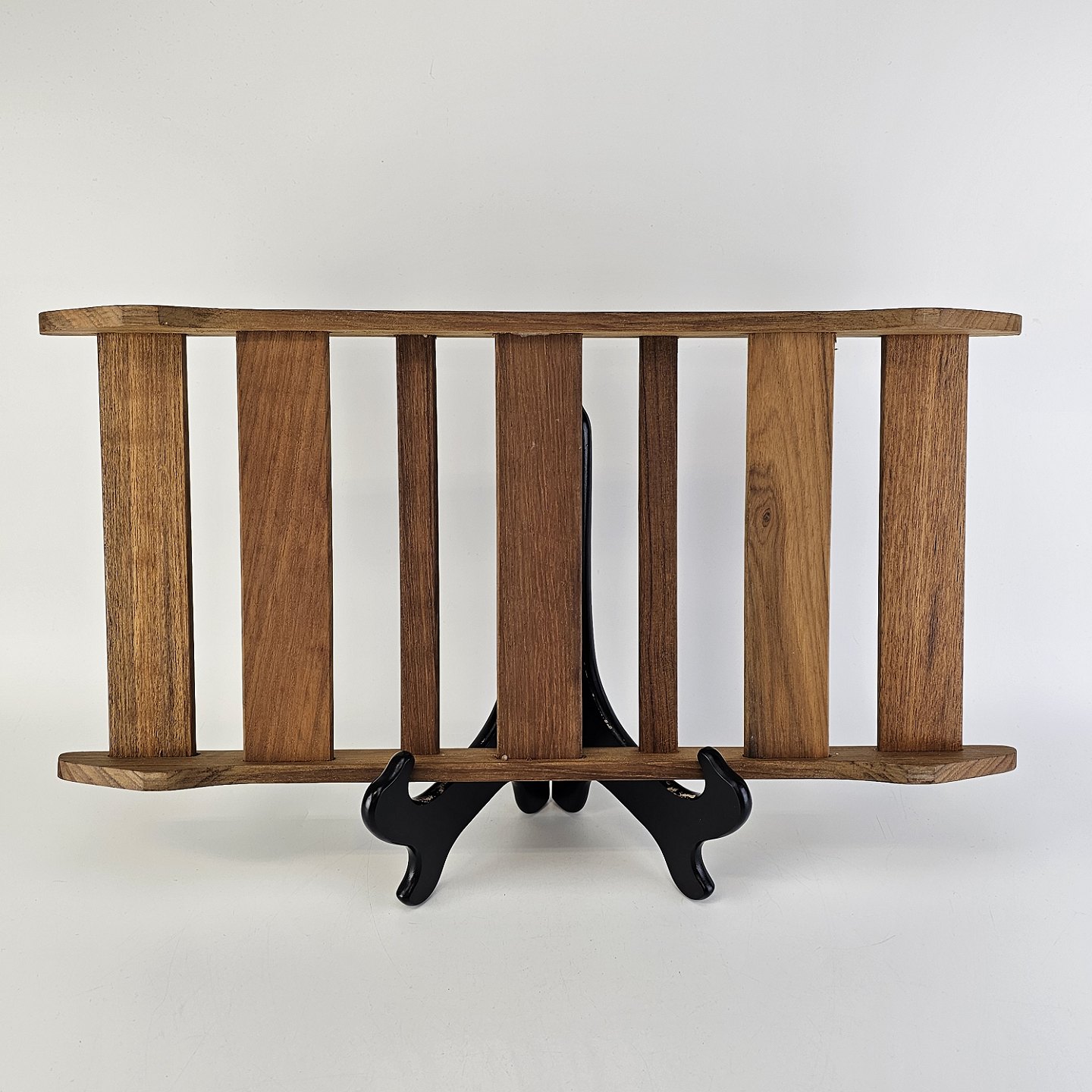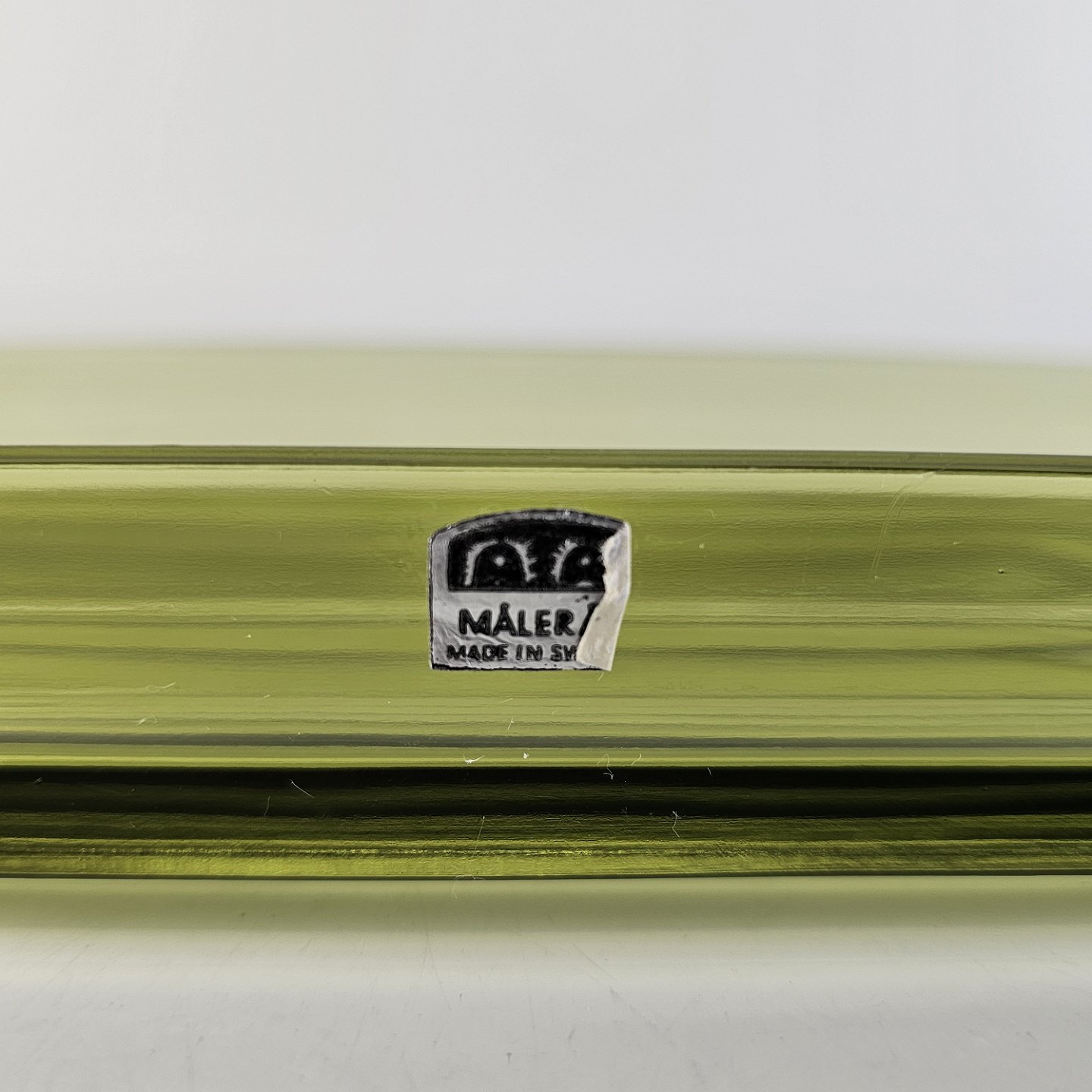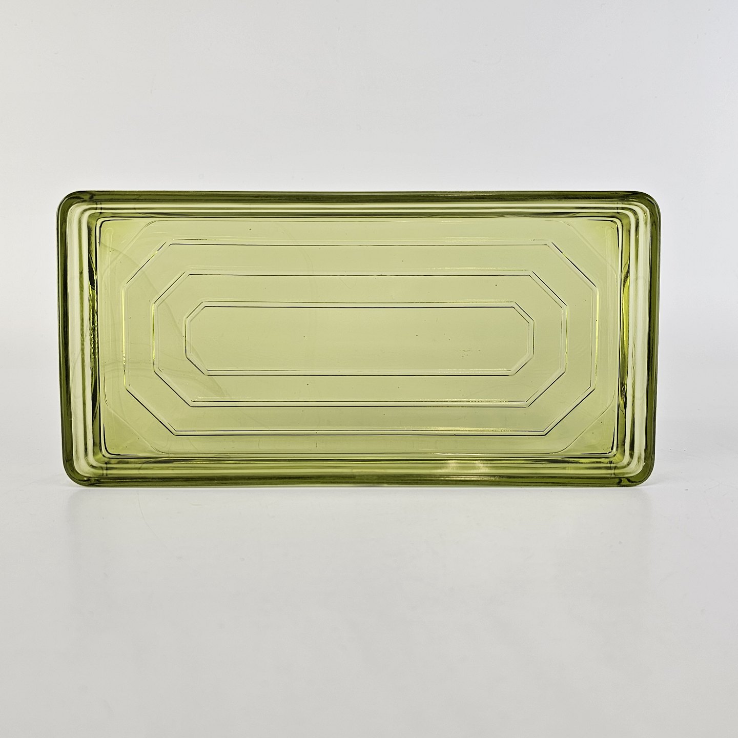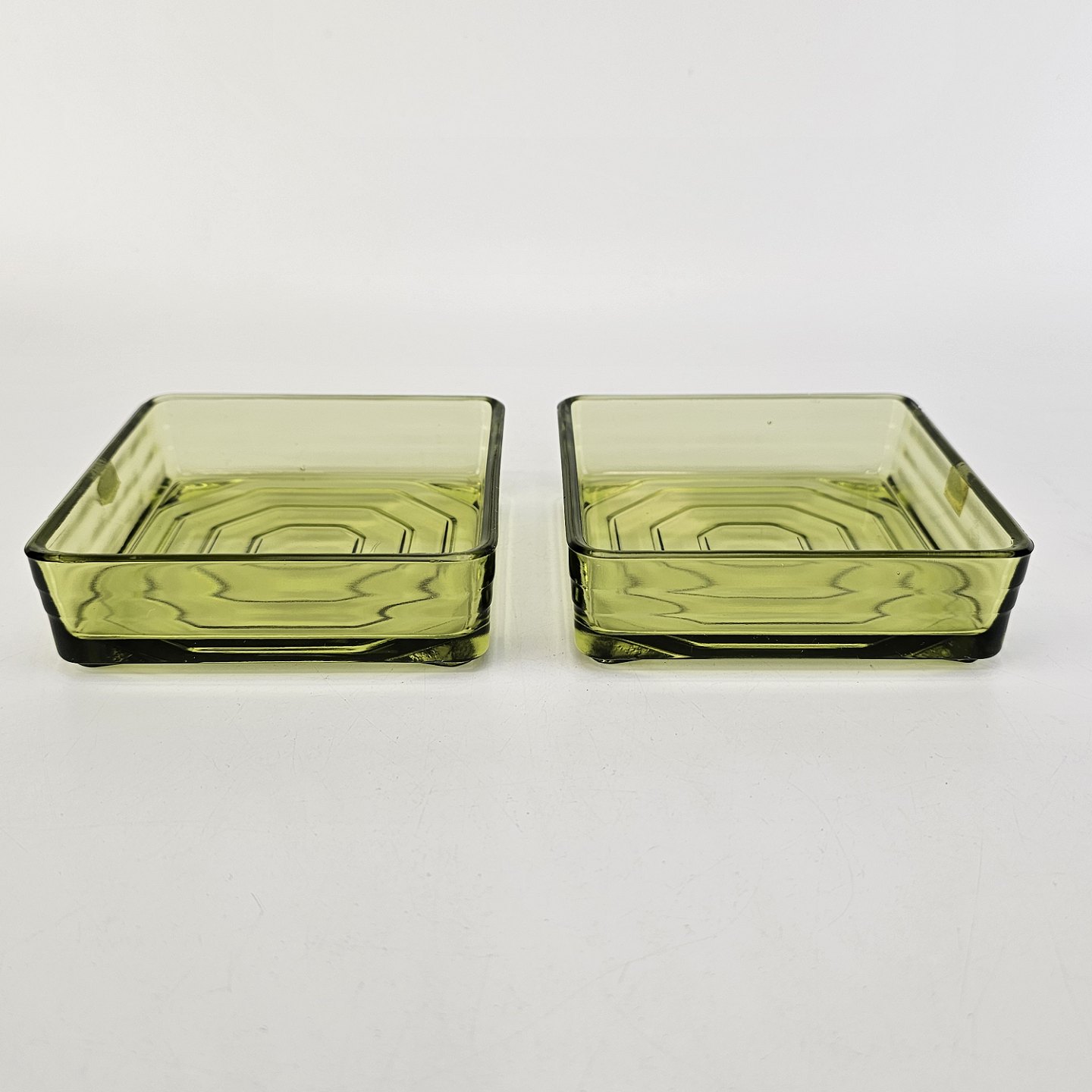Cabaret fad i teaktræ med fire skåle af grønt presset glas i to forskellige størrelser